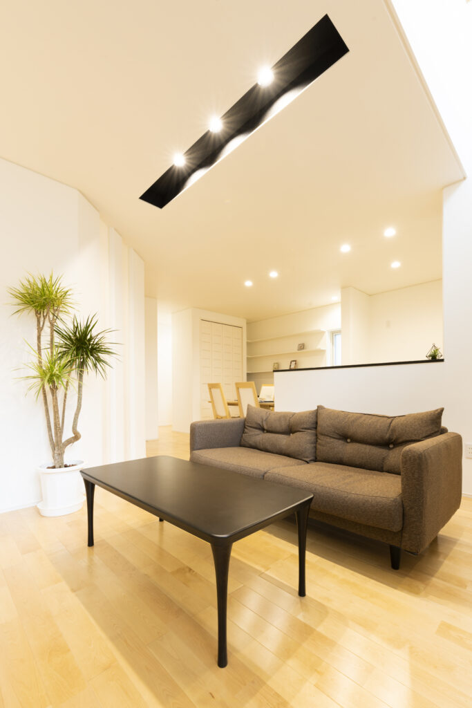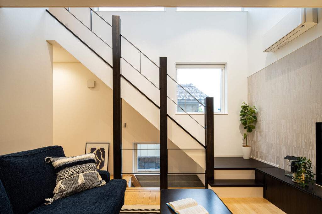 吹き抜けによって、街中の立地でも自然光をたっぷり取り入れる設計!