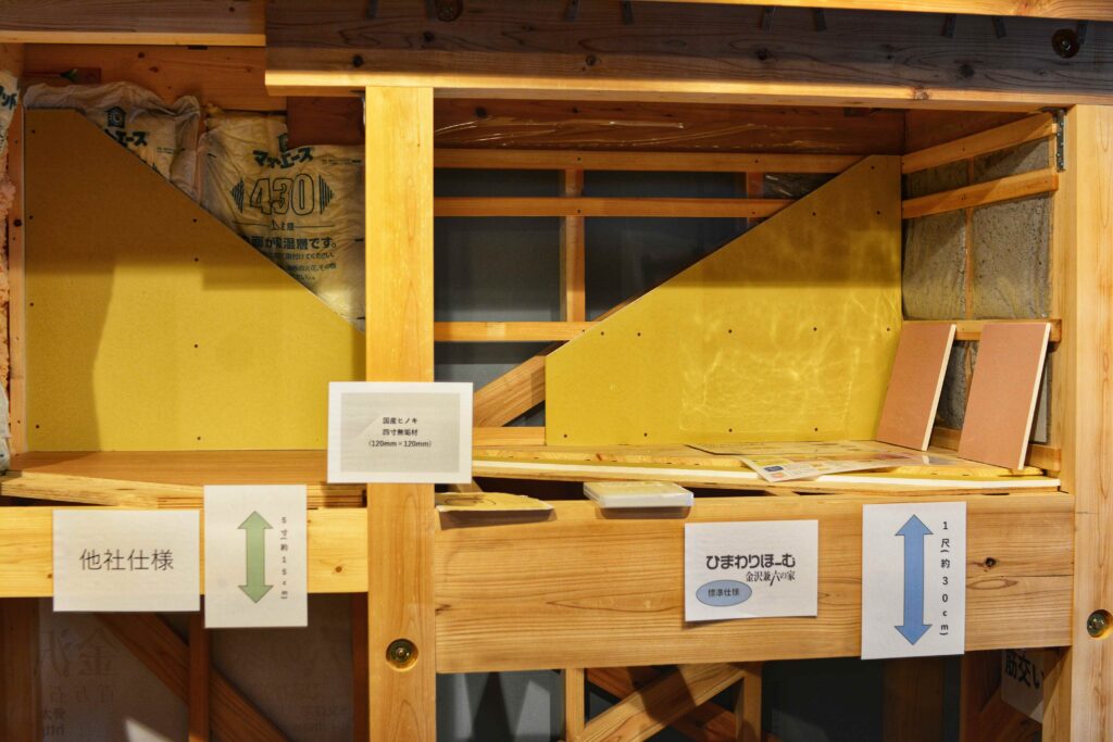 ショールームでは、耐震性能・断熱性能・気密性能といった