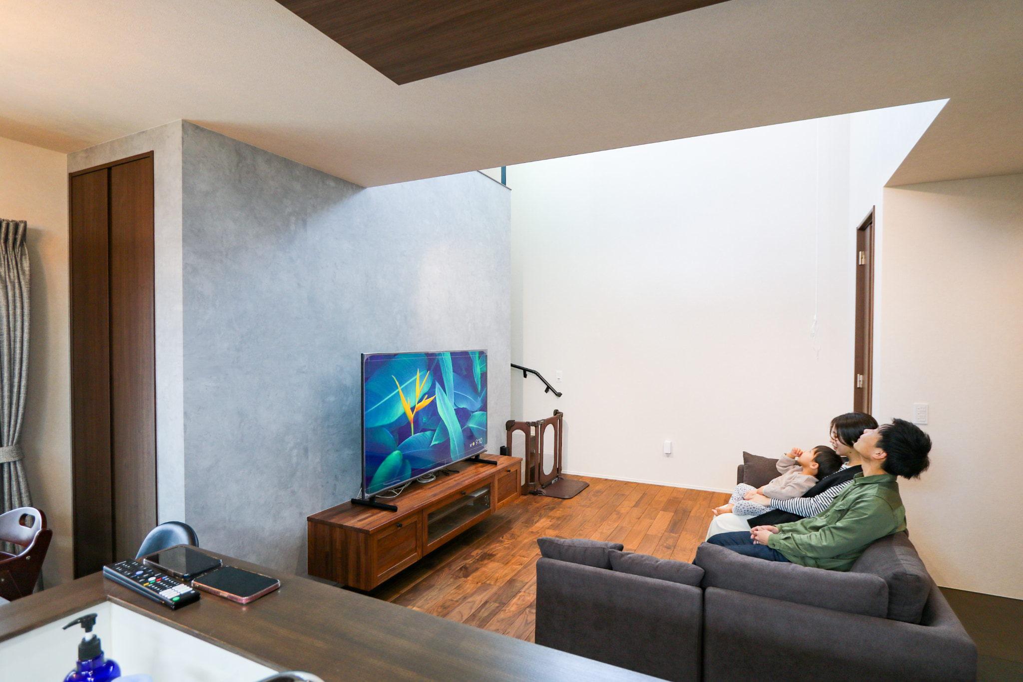 奥様 : 広くとってもらったファミリークロークと、吹き抜けリビングの開放感が特に気に入っています。また、家事動線にこだわり家事が楽になりました!私のこだわりが強すぎてたくさんわがままを言いましたが、設計士さんや現場監督さんがこだわりを叶えるためにたくさん考えて提案をくださりありがたかったです。