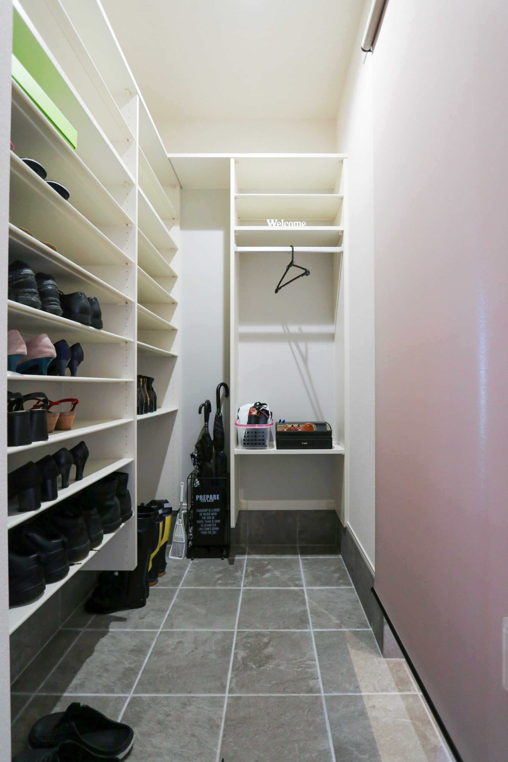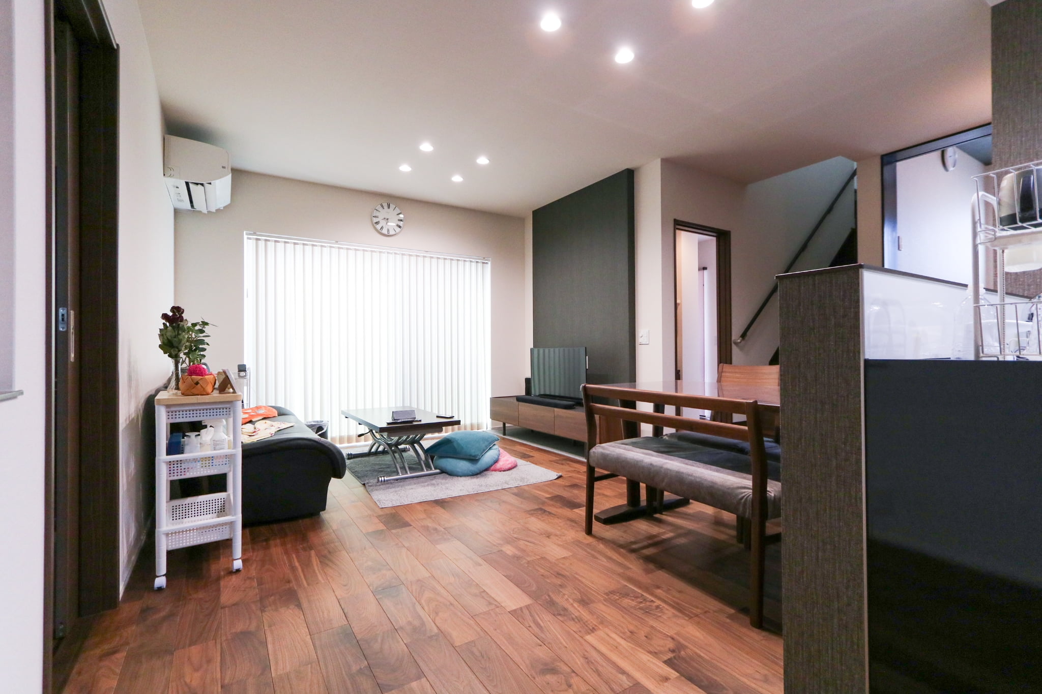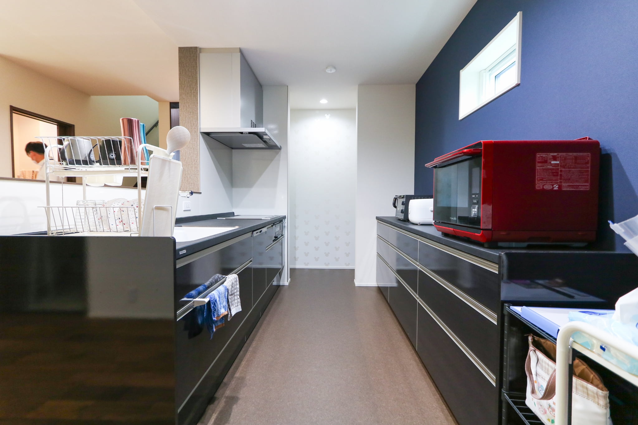 大迫力のスクリーンと臨場感あふれるサウンドで映画を見ると、好きな映画がより一層楽しめるます。奥様 : 床や建具の色を暗めにして落ち着いたモダンな雰囲気にしたことです。特にキッチンは収納スペースもたくさんあり、使い勝手も良くとても気に入っています。