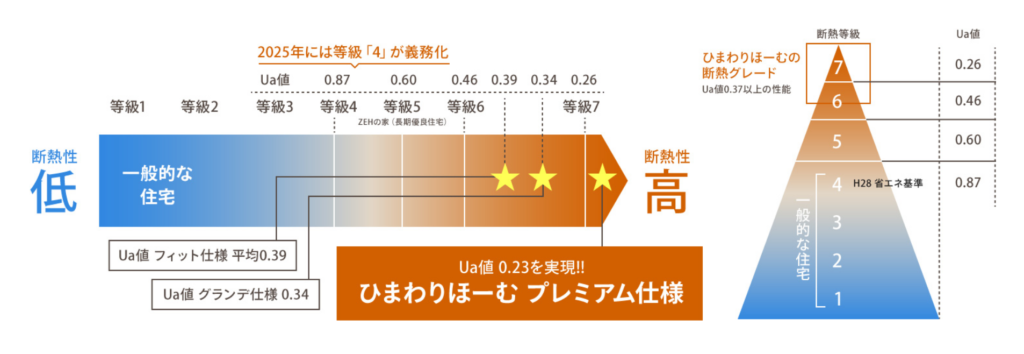 ひまわりほーむは国の新省エネ制度の断熱等級で最高等級の7をすでに実現しています。