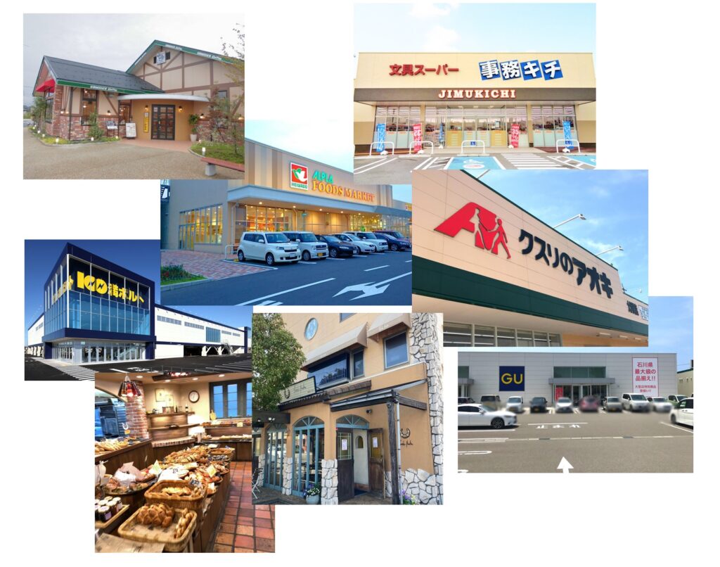 スーパーやドラッグストア、県庁や県立中央病院、金沢クルーズターミナル、海側環状線、国道8号線、金沢東ICと何をするにもどこへ行くにもアクセス良好で生活しやすい環境です。しかも大通りから1本入った場所なので小さなお子さんがいる家庭は安心です。