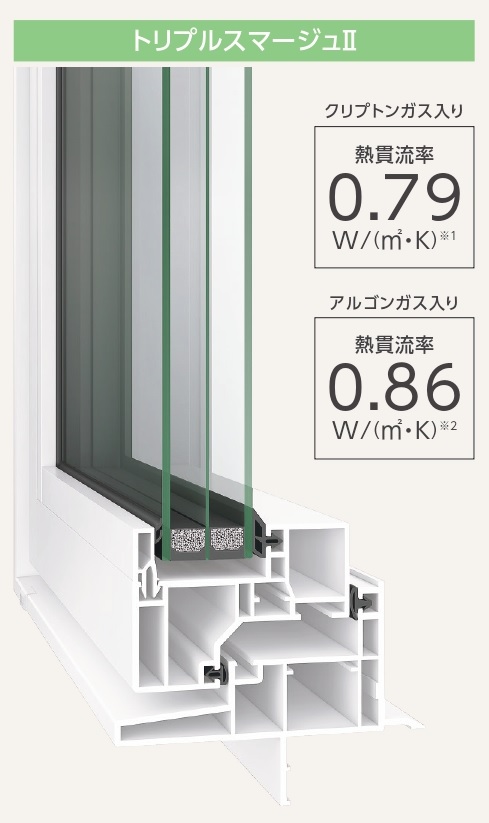 トリプルガラス✕W断熱でUa値0.31、0.32の断熱性能