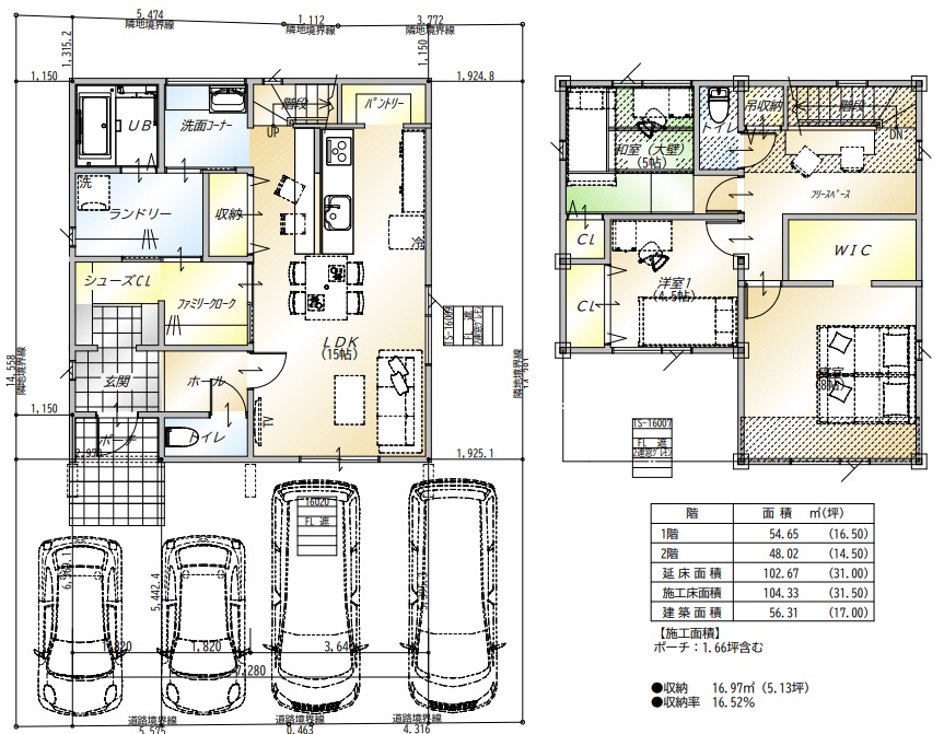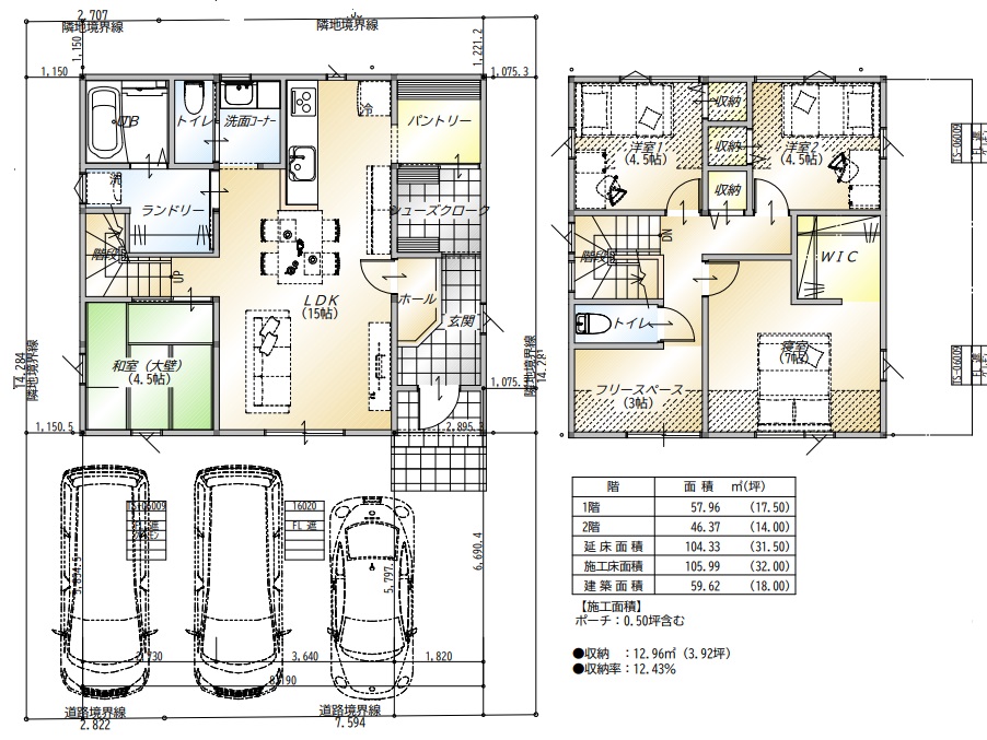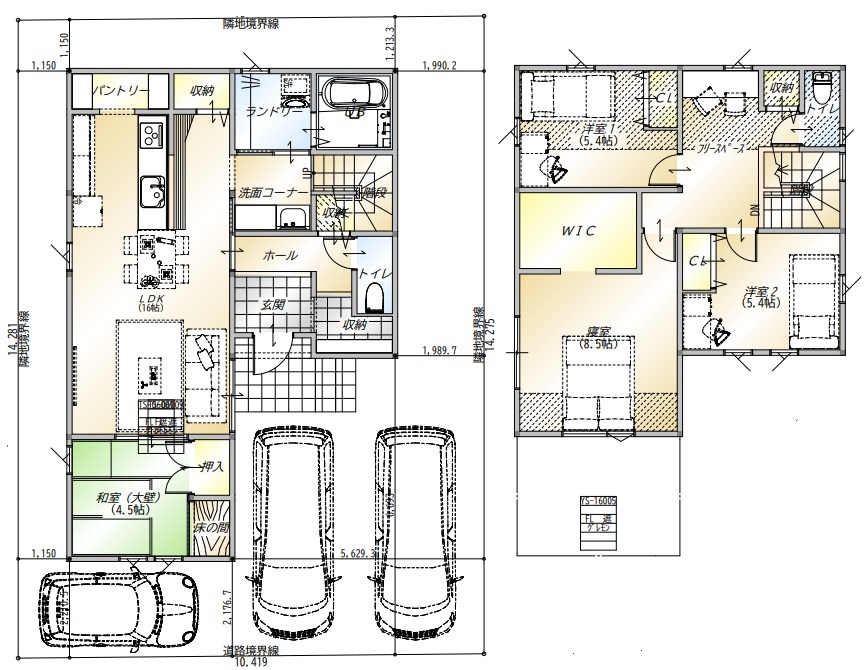 建物面積31.5坪、南向き45坪の土地にあてはめた場合です。