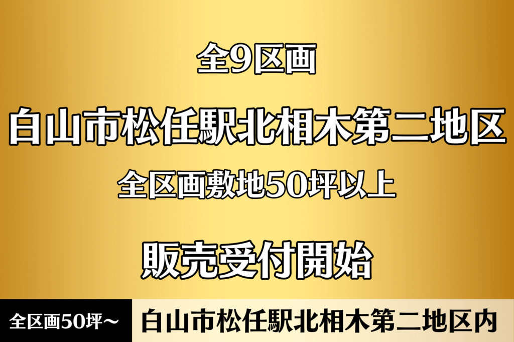 NEW土地販売受付開始!!全9区画!!「白山市相木エリア」白山市松任駅北相木第二地区の土地販売受付を開始しました。
