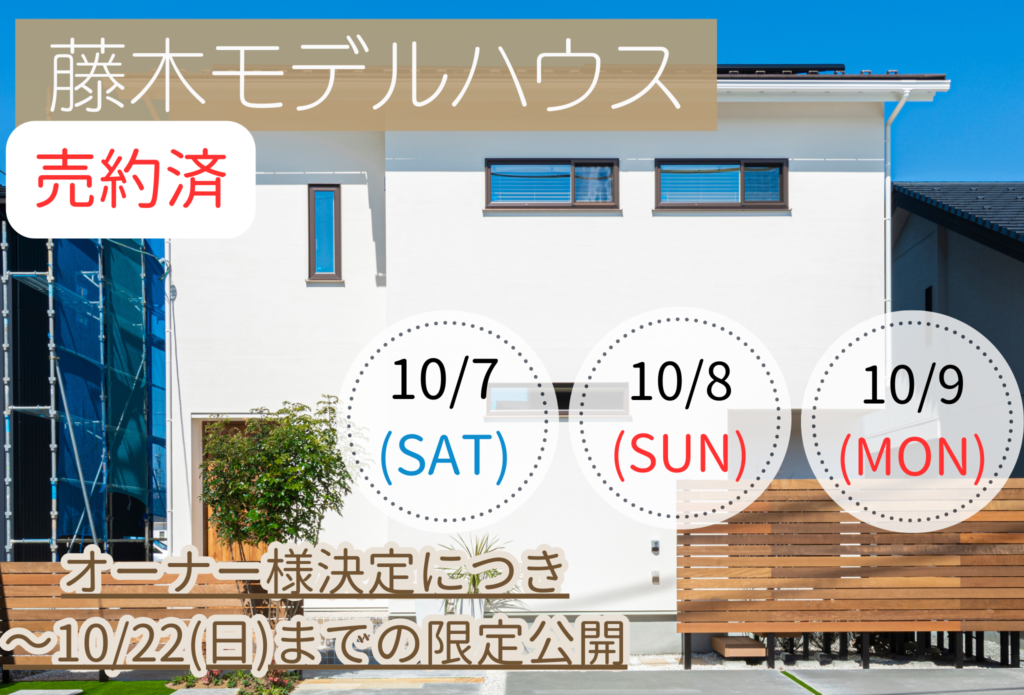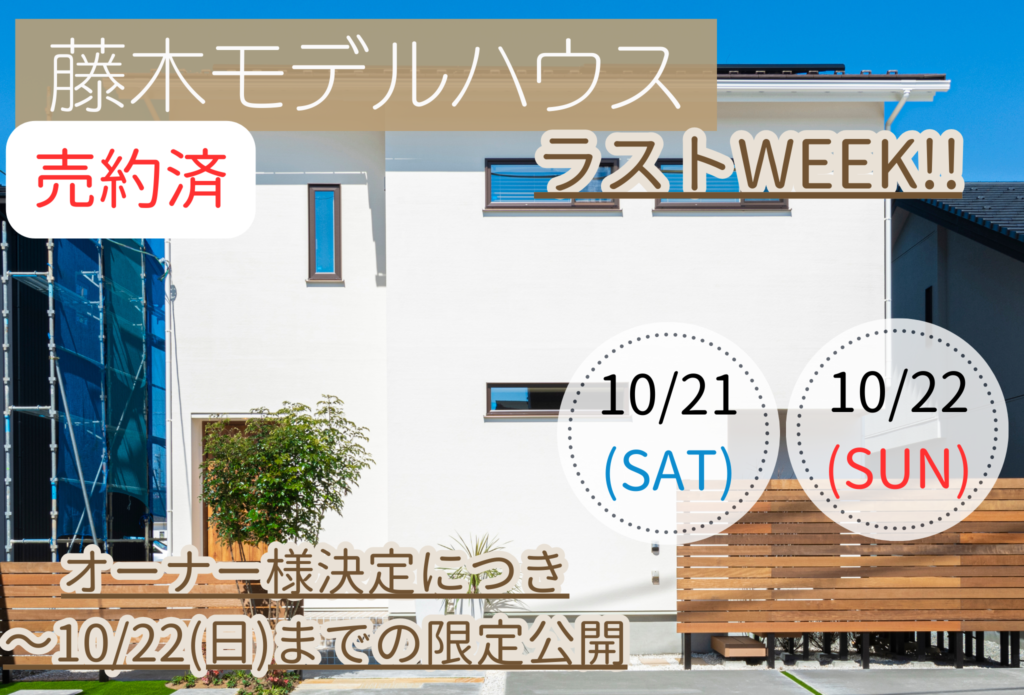 当日予約大歓迎!最終公開【藤木モデルハウス】オーナー様決定につき~10/22(日)までの限定公開