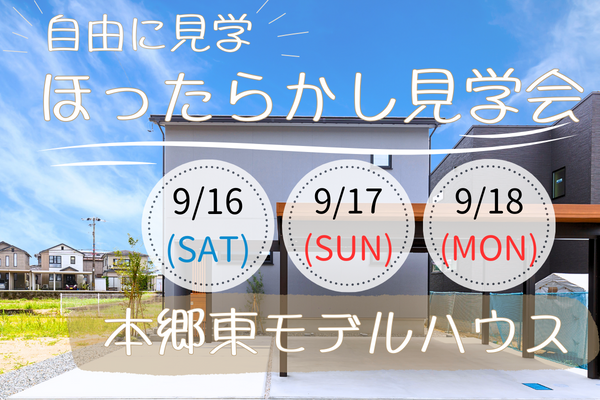 開催日時 : 2023年9月16日(土) ・17日(日)・18日(祝)※平日も見学可能です 今週も土日イベント開催いたします! 写真で見るより実際に見たほうが生活のイメージがしやすく, マイホームの魅力を肌で感じる事ができます🏠夢のマイホームを手に入れるためにまずはご見学にお越しください♪ 『ほったらかし見学会』 その名の通り、、、ほったらかしにしておくので…