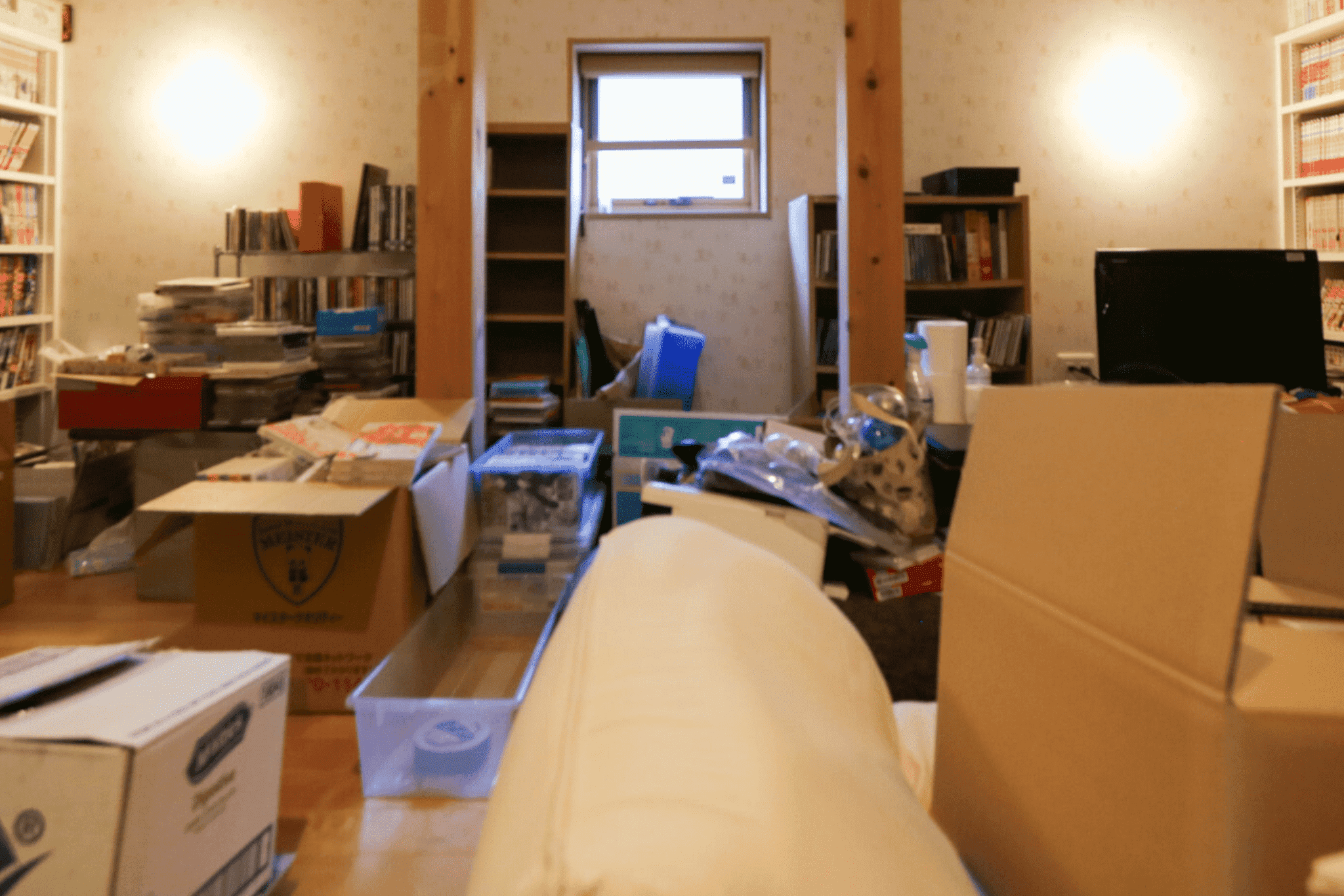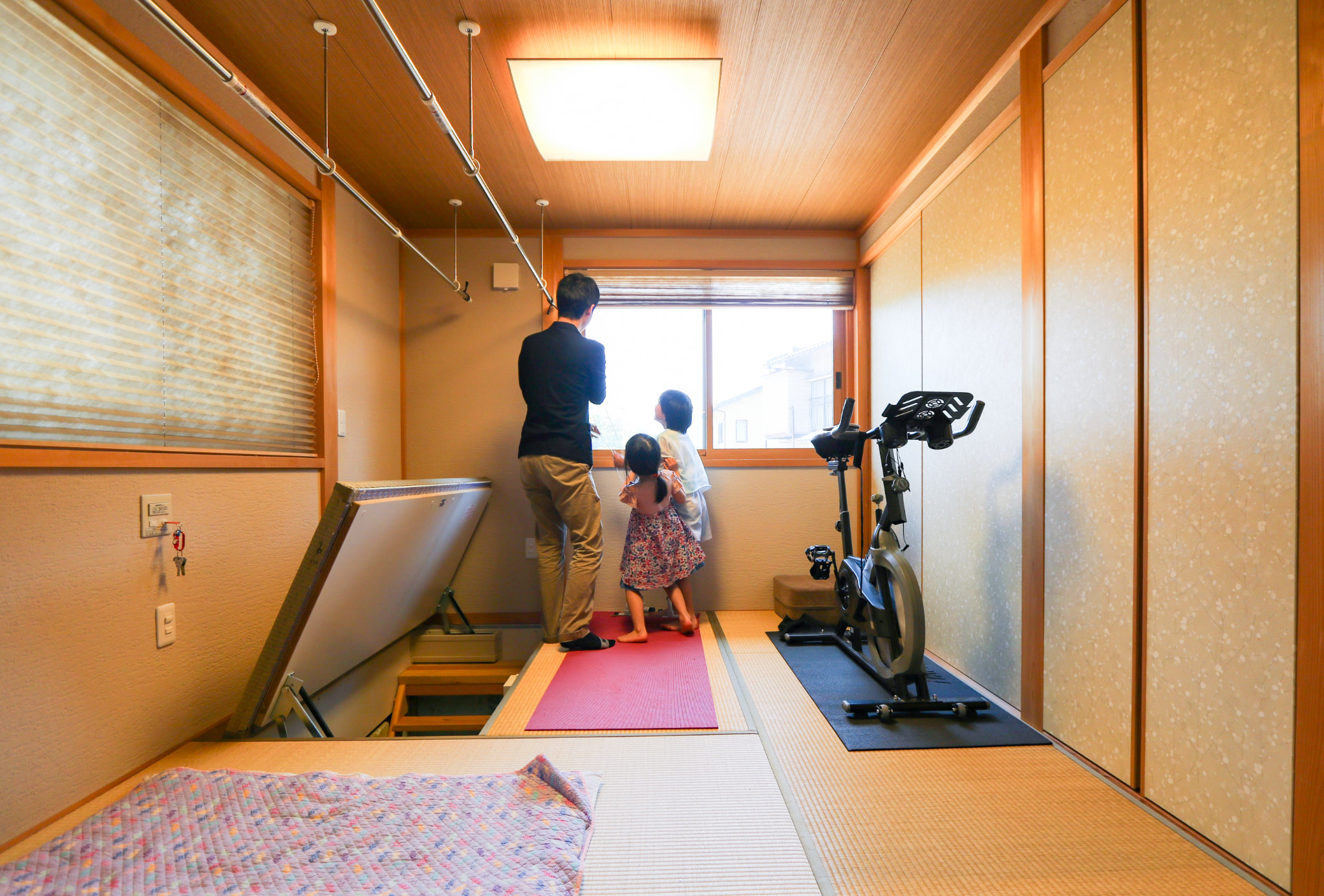 小上がりの和室からは階段で床下に降りて行くことができ、子どもの思い出の品や季節ものを収納しています。